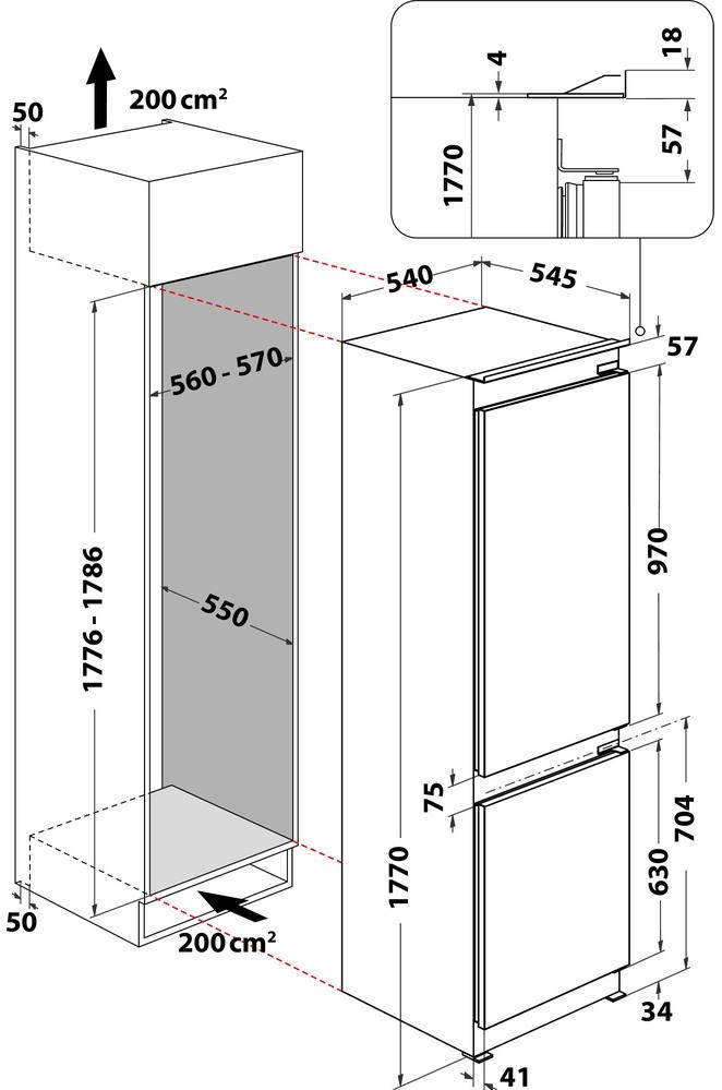 Размеры для встраивания (ВхШхГ): 1776x560x550 мм