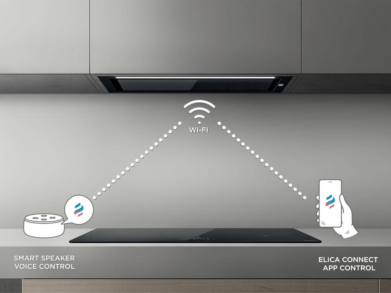 Управление с помощью голосового помощника или приложения Elica Connect: есть