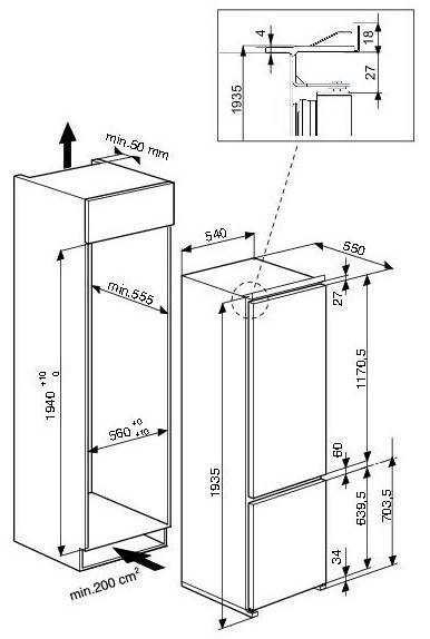Размеры для встраивания (ВхШхГ): 1940x560x555 мм