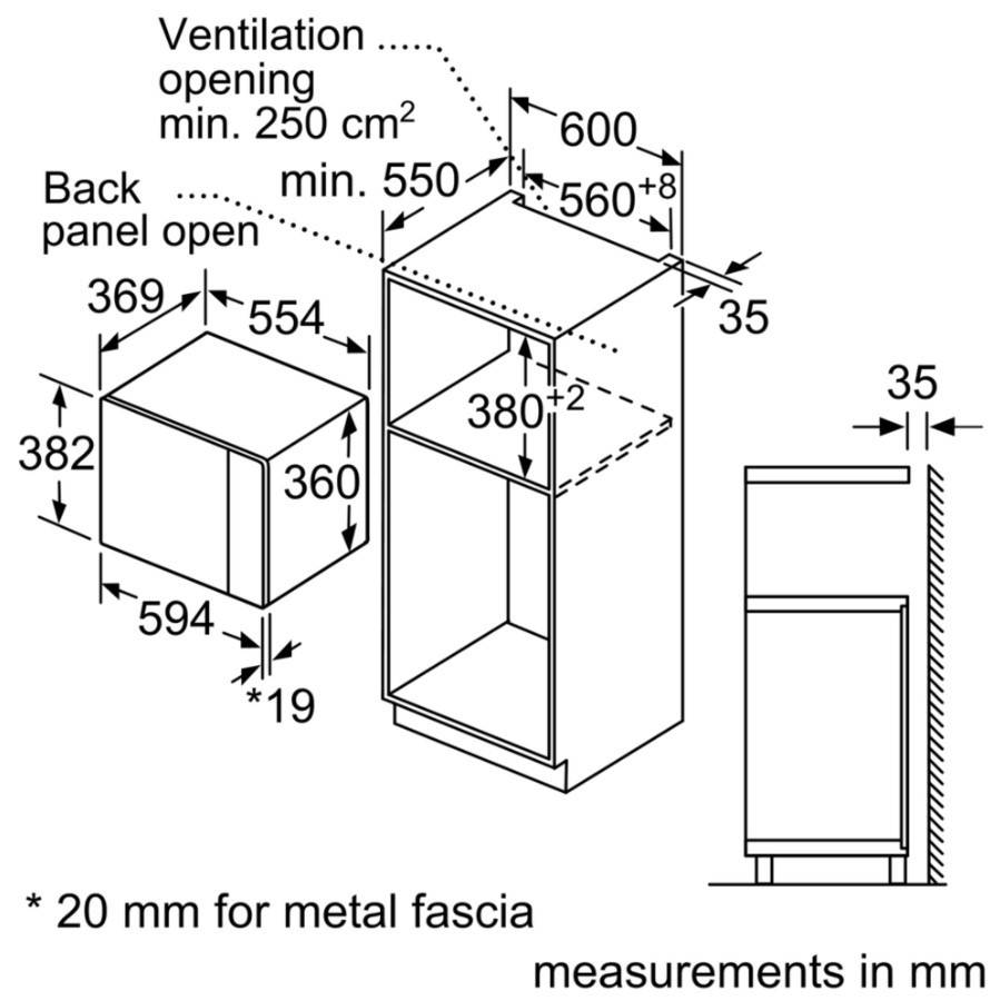 | Висота ніші для вбудовування | 380 мм |