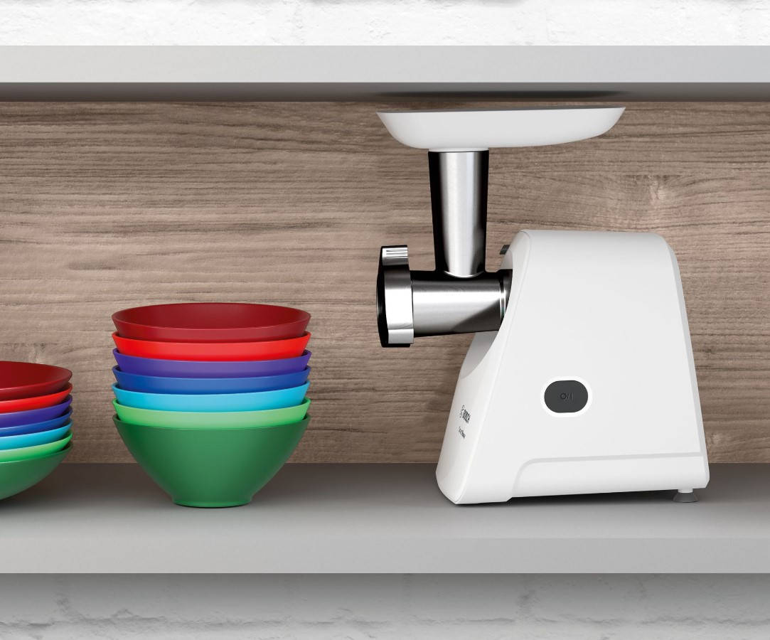 - Компактна конструкція: швидко під рукою або зручне зберігання м'ясорубки.