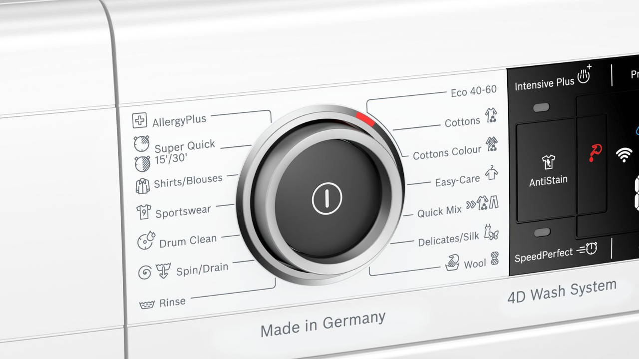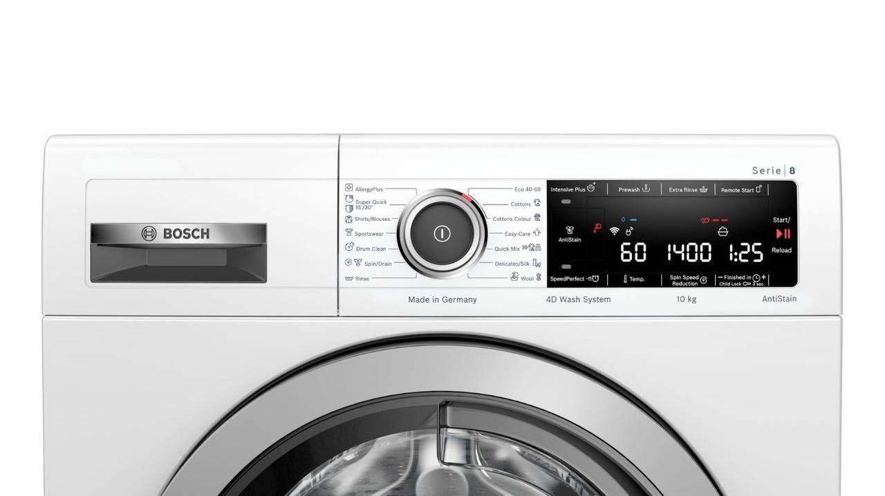 Пральна машина Serie ⁇ 8 з Home Connect, з 4 програмами AntiStain і 4D Wash System з Intensive Plus забезпечує бездоганні результати під час кожного завантаження повністю автоматично.