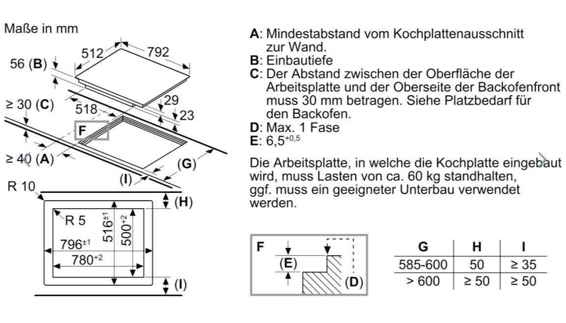 Розміри для вбудовування (ШхГ): 780x500 мм