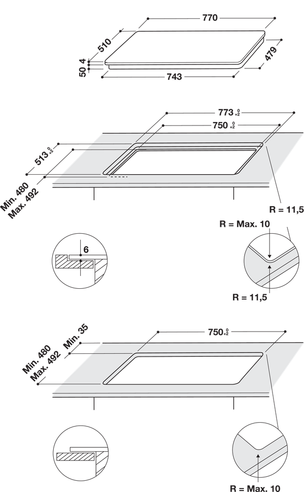 | Ширина ніші для вбудовування | 750 мм |
