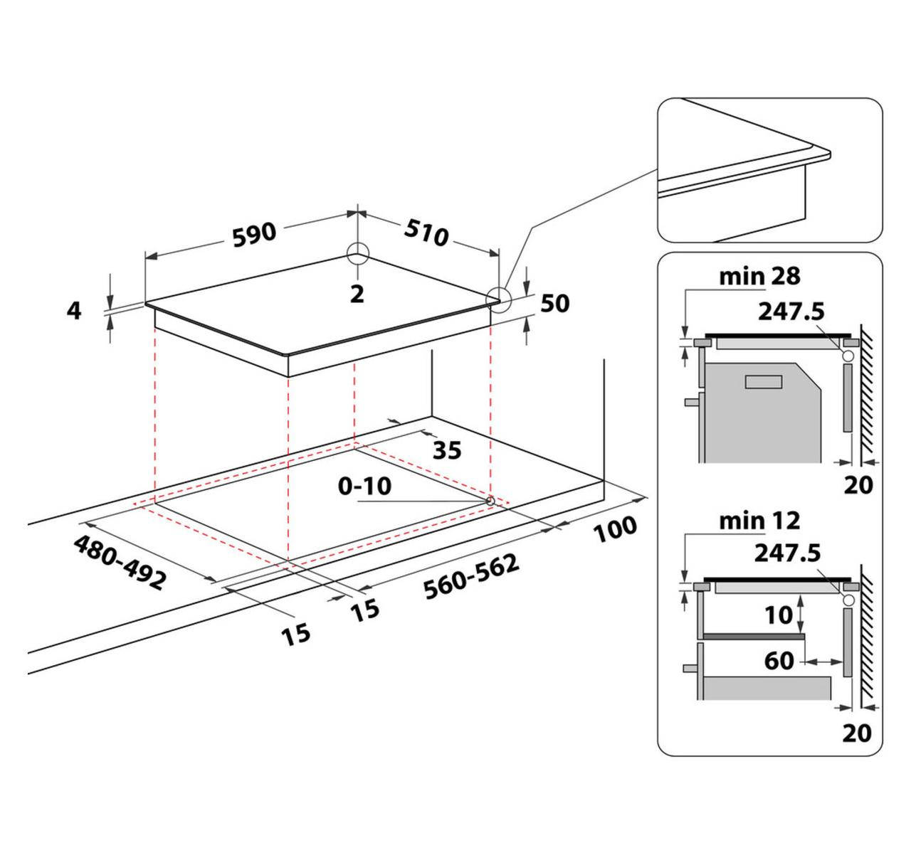 Розміри для вбудовування (ШхГ): 560x480 мм
