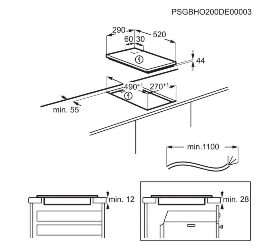 Розміри для вбудовування (ШхГ): 270x490 мм