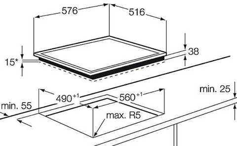 | Габаритні розміри варильної поверхні: | |