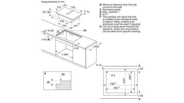 Розміри для вбудовування: (Ш х В х Г): 780х227х500мм