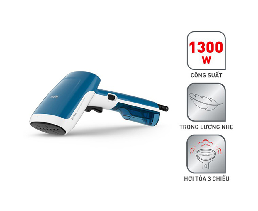 Відпарювач Tefal DT6130E0 виробляється в сучасному дизайні в корпусі синього та білого кольору. Він легкий, компактний і ергономічний, тому приладом зручно користуватися та брати із собою у подорож. Модель потужністю 1300 Вт швидко виходить на робочий режим – для цього потрібно 15 секунд. Пристрій має знімний резервуар об'ємом 70 мл, який безпечно поповнюється в будь-який час. Пар, що утворюється, подається через отвори в пластиковій підошві з інтенсивністю 20 г/хв. Він безпечний для всіх типів тканин і не тільки розгладжує складки та освіжає речі, пара ще усуває бактерії, алергени та неприємні запахи, при цьому не потрібна прасувальна дошка – одяг можна залишити на плічках. Відпарювач Tefal DT6130E0 забезпечений шнуром живлення довжиною 2,6 метра, що обертається на 360 градусів.
