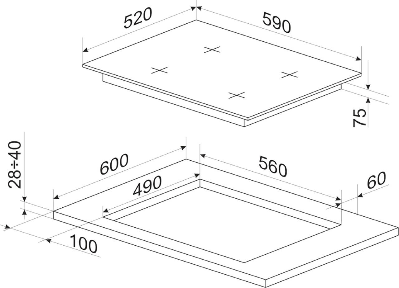 | Габаритні розміри варильної поверхні: | |