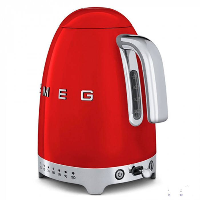 Стильний електричний чайник SMEG KLF04RDEU червоного кольору виконаний у ретро стилі 50-х років у корпусі з нержавіючої сталі. Модель розроблена із вбудованим термостатом, за допомогою якого можна задавати температуру нагрівання води в діапазоні від 50С до 100С та підтримувати її протягом 20 хвилин. У приладі встановлено прихований нагрівальний елемент у вигляді диска потужністю 2400 Вт. Підставка з центральним контактом та покриттям, що дозволяє встановлювати чайник з будь-якого боку та обертати його на 360 градусів. Пристрій об'ємом 1,7 літра оснащений вбудованим фільтром, що затримує частинки накипу. Закипання води супроводжується застережливим звуковим сигналом, після чого функція автоматичного відключення обезструмлює модель. Стильний електричний чайник SMEG KLF04RDEU буде затребуваний для швидкого та комфортного підігріву та кип'ятіння води.
