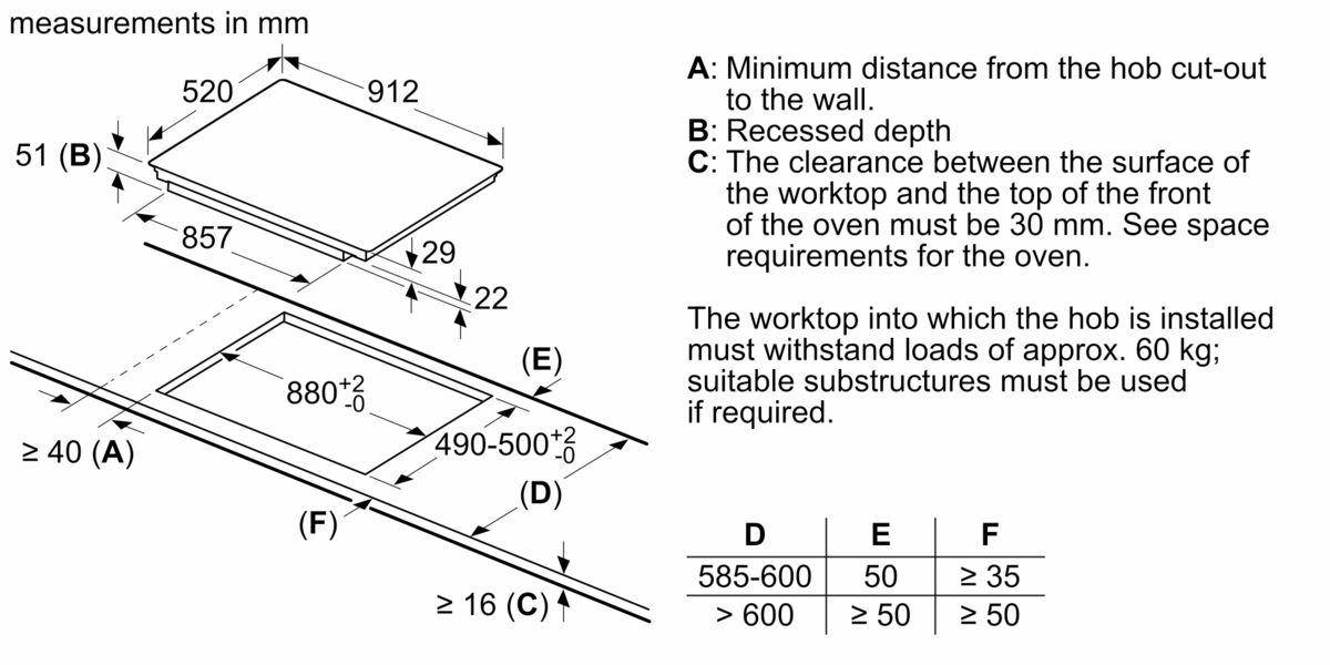 | Габаритні розміри варильної поверхні: | |