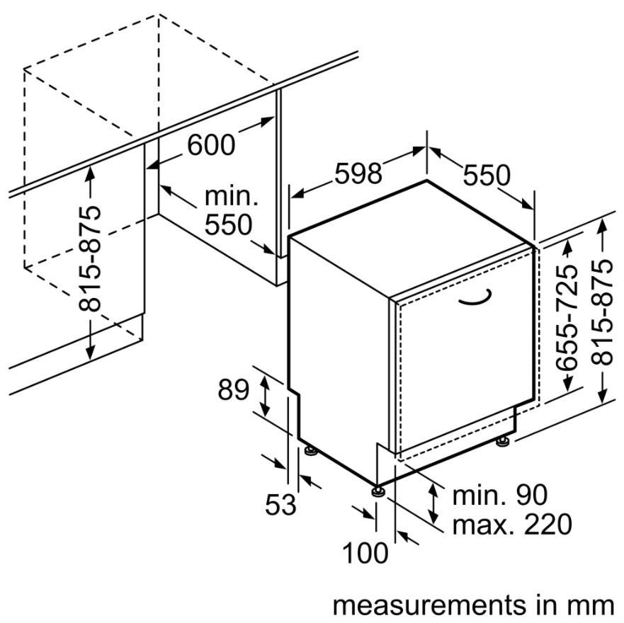 | Висота ніші для вбудовування | 815 мм |