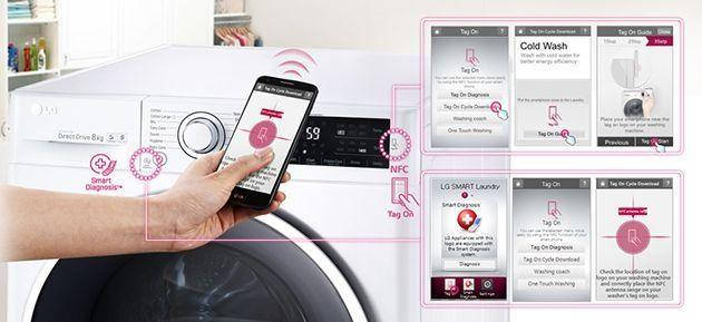 Функція Tag On дає змогу завантажувати нові програми прання на вашому смартфоні. Потім просто торкніться символу Tag On NFC, щоб встановити програму в пральній машині. Пам'ять має 20 елементів із щорічним оновленням. Інтелектуальна функція діагностики розв'язує майже всі дрібні проблеми, перш ніж вони стануть більшими.